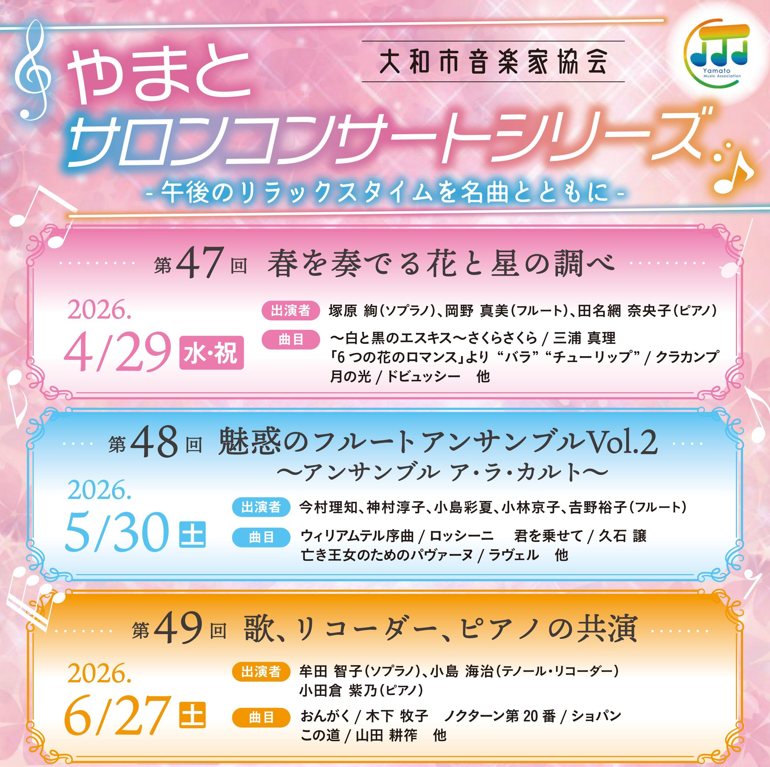 これからも沢山の良い音楽を、多くの方々に届けられるよう、邁進して参ります!!どうぞこれからも、大和市音楽家協会をよろしくお願い致します。
